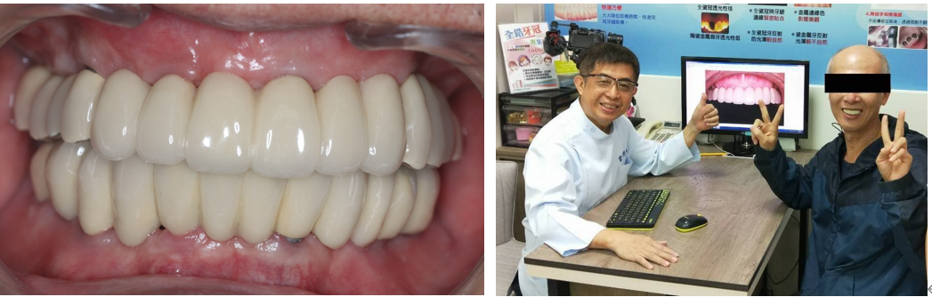 植體支撐式固定假牙完成,患者非常滿意外觀及咀嚼功能